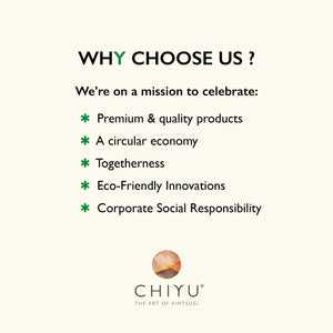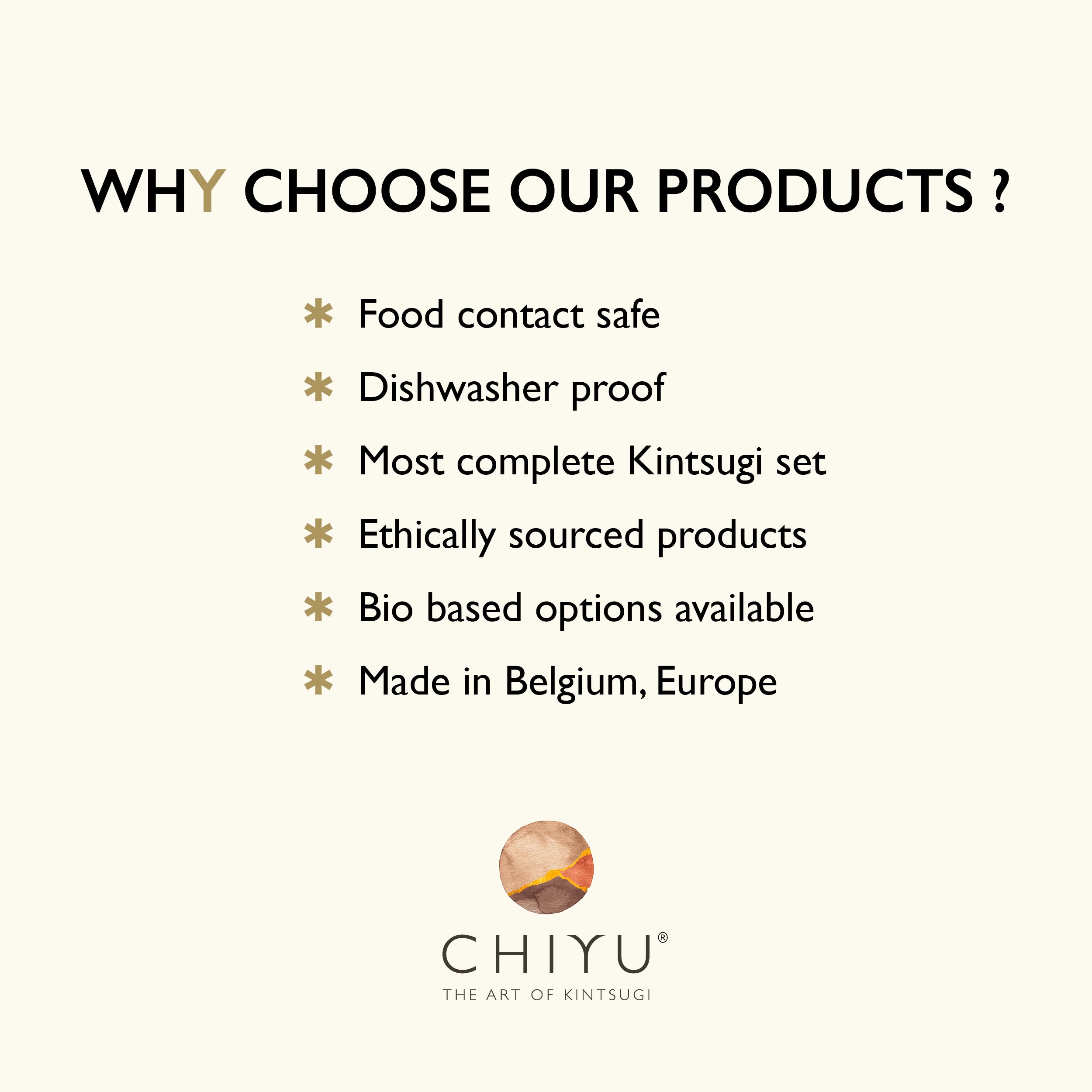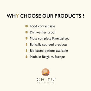 Chacun reçoit son propre kit de réparation Kintsugi d'une valeur de 39,95 € pour travailler pendant l'atelier et ramène à la maison le magnifique résultat réparé unique dans un joli totebag CHIYU. Avec l'ensemble, vous pouvez continuer à recycler d'autres objets à la maison.